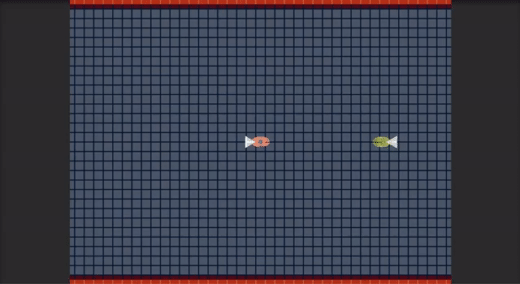 Flee | Currently a behavior that simply makes a random point opposite of the opponent fish's direction. Happens when close to player. Can be toggled on and off. | Will implement a random point away from target should its tail blade face towards seeker. May consider smoother ways to reach vulnerable body with local avoidance. |