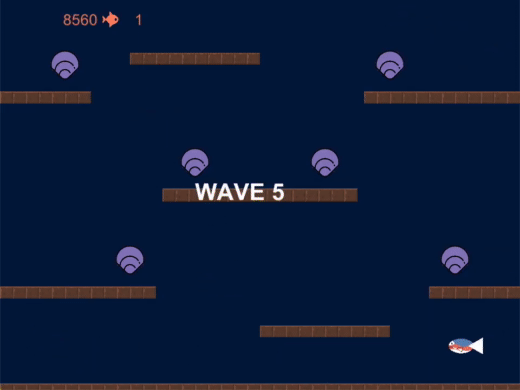 In the Waves Demo, now players can fight opponents in waves, which provided much needed variance in flow rather than having endless opponents overwhelm the player constantly. Additionally, the urchins now appear together with opponent fish. When a wave is cleared by defeating all opponent fish, all the urchins will disappear. The wave number provides a little break for players to set themselves up for an upcoming round.